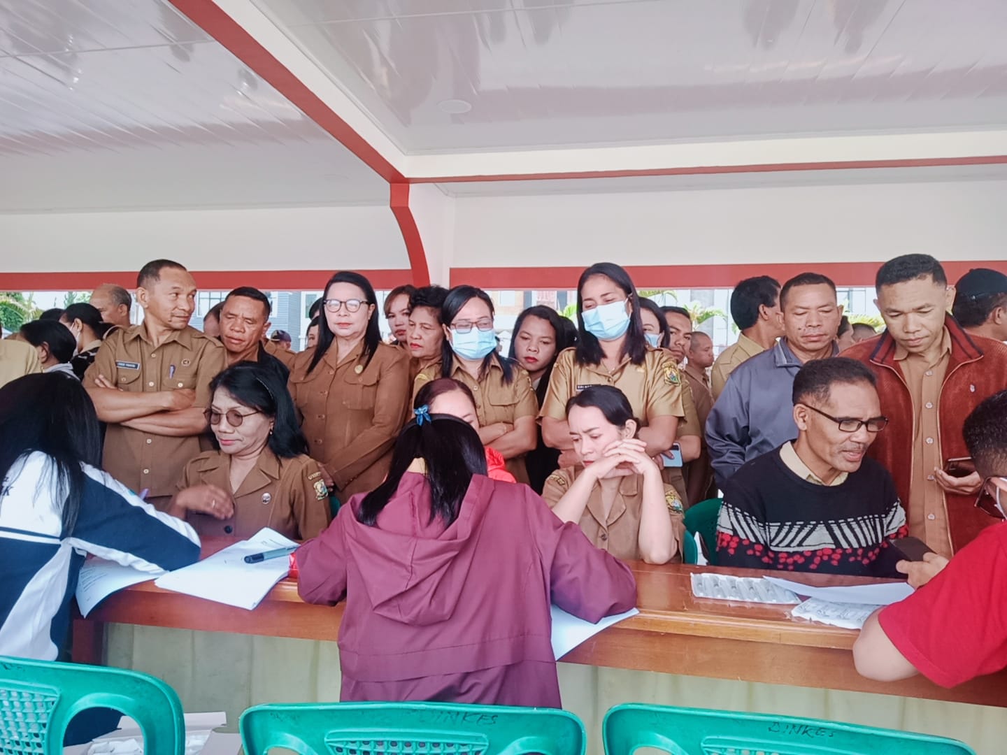 Manggarai – Aparatur Sipil Negara (ASN) yang bertugas di lingkup Pemerintahan kabupaten Manggarai antusias mengikuti kegiatan skrining kesehatan yang diadakan Dinas kesehatan kabupaten Manggarai, bertempat di lapangan Natas labar Motang Rua Ruteng, Senin 05 Januari 2024. Selain ASN kegiatan ini (Skrining) juga diikuti sejumlah tenaga Non-ASN.
