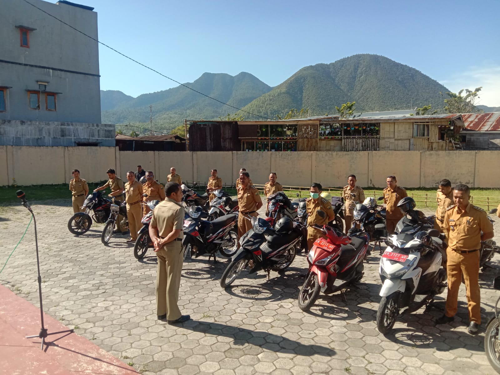 Apel Aset dihadiri oleh sejumlah Lurah dan PNS se-kecamatan Langke Rembong yang memegang kendaraan dinas roda dua.