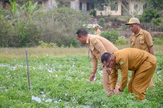 MANGGARAI – Bupati Manggarai Herybertus Nabit meninjau kebun penangkar Kentang di Desa Compang Dalo, Kecamatan Ruteng. Kunjungannya tersebut didampingi Kepala Dinas (Kadis) Pertanian dan Ketahanan Pangan Manggarai, Ferdi Ampur, Senin (15/09/2025).