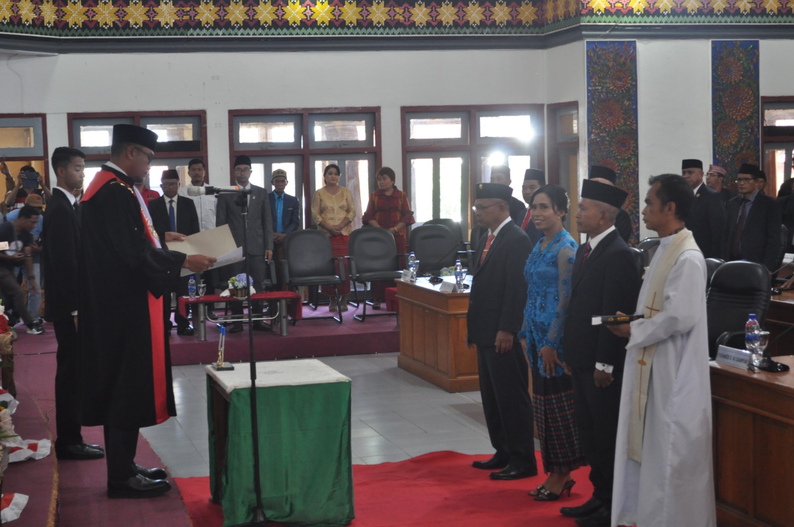 Pengambilan sumpah dan janji ketua DPRD yang dipandu ketua Pengadilan Negeri Ruteng berlangsung dalam sidang paripurna DPRD, bertempat di ruang sidang utama kantor DPRD Manggarai, Kamis 31/10/2024. Di tempat yang sama juga dilaksanakan pengambilan sumpah dan janji wakil ketua DPRD Agnes Menot dan Tomas Tahir.