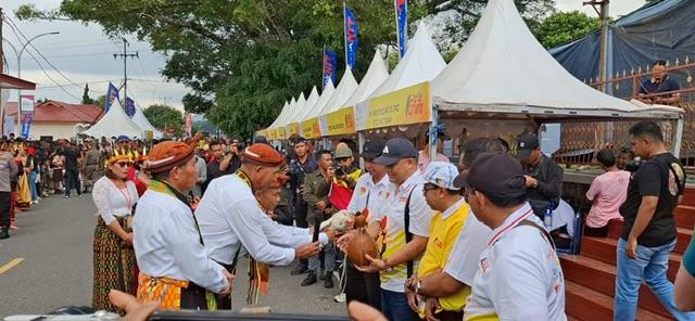 Ruteng – Para peserta Tour de EnTeTe yang diwakili oleh para pejabat kantor Gubernur NTT diterima secara adat Manggarai di Ruteng.