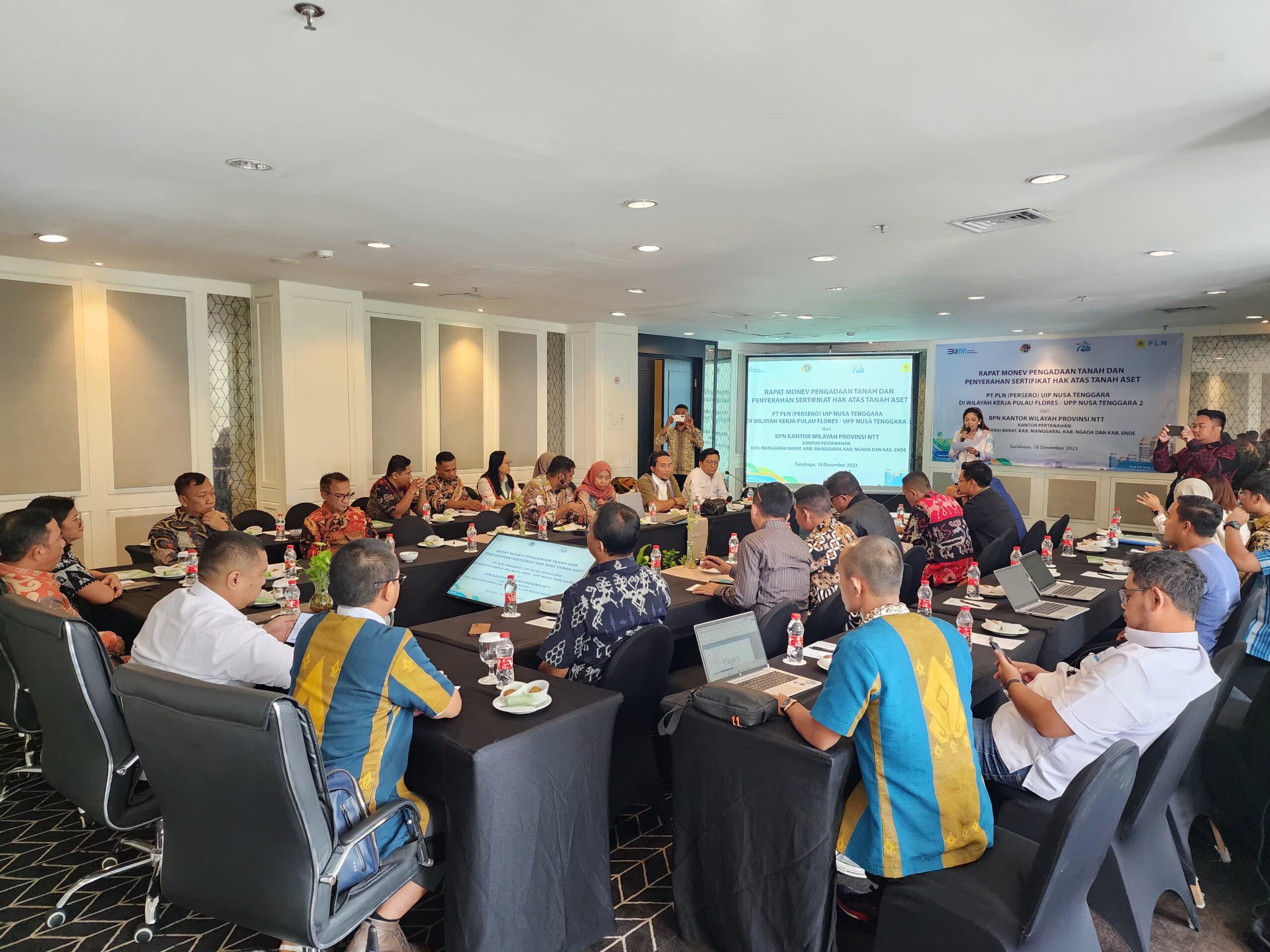 Proses penyerahan hak atas aset tersebut dilakukan secara simbolis oleh Kepala Bidang Penetapan Hak dan Pendaftaran, I Nyoman Mertayasa, kepada Senior Manager Perizinan, Pertanahan dan Komunikasi PT PLN (Persero) UIP Nusra, Dede Mairizal, dalam rapat Monev Pengadaan Tanah dan Penyerahaan Sertifikat Hak Atas Tanah Aset Wilayah Kerja Pulau Flores, di Surabaya, Senin, 18 Desember 2023.
