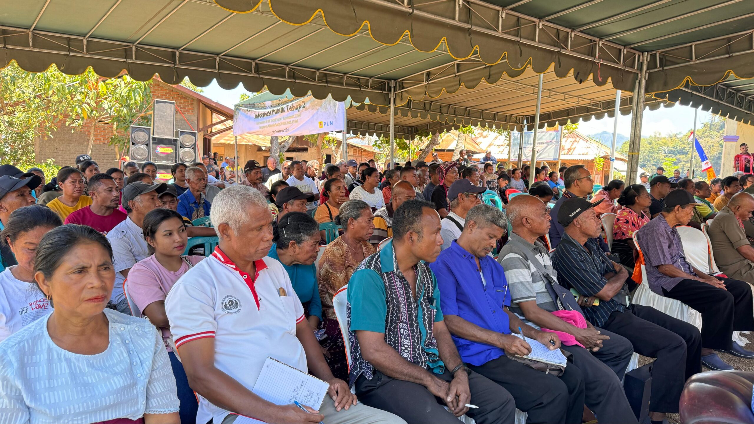Lewoleba, Info1News.com – PT PLN (Persero) bekerja sama dengan Pemerintah Daerah Lembata menggelar kegiatan sosialisasi pembangunan Pembangkit Listrik Tenaga Panas Bumi (PLTP) Atadei 2×5 MW. Kegiatan ini merupakan bagian dari tahapan pengadaan lahan di Kecamatan Atadei, Kabupaten Lembata. Sosialisasi yang diadakan di halaman Kantor Desa Nubahareka dihadiri oleh Forkompinda, SKPD Kabupaten Lembata, serta 120 warga setempat, termasuk tokoh masyarakat dan tokoh adat dari Desa Atakore dan Desa Nebuhakera.